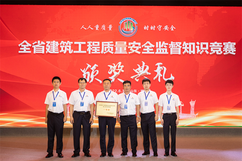 6月30日,山東省建筑工程質(zhì)量安全監(jiān)督知識競賽爭冠賽在濰坊舉行,集團公司副總裁周兵一帶隊參加,經(jīng)過“搶灘登陸”、“勇往直前”、“火眼金睛”等環(huán)節(jié)的激烈比拼,集團公司質(zhì)量團隊、安全團隊脫穎而出,分別獲得爭冠賽團隊一等獎。