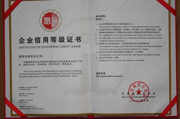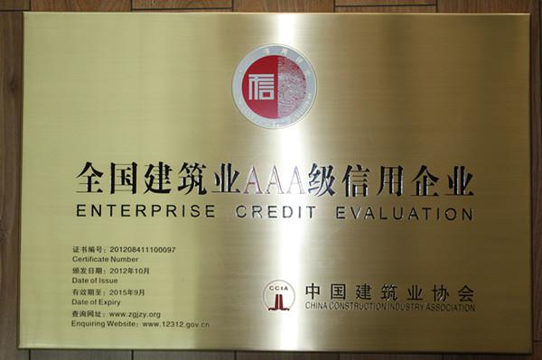 今年,我公司再次被評為全國建筑業(yè)AAA級信用企業(yè),這是總公司第二次獲此殊榮。