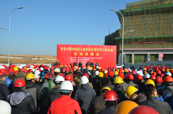 青島市貫徹建設(shè)工程質(zhì)量治理兩年行動實(shí)施現(xiàn)場觀摩會在我公司召開