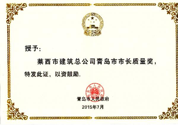 7月21日,青島市質(zhì)量工作會(huì)議在市級機(jī)關(guān)會(huì)議中心召開,會(huì)議的主要議題是表彰市長質(zhì)量獎(jiǎng)獲獎(jiǎng)組織和個(gè)人,傳達(dá)首屆中國質(zhì)量大會(huì)精神,總結(jié)近年來全市質(zhì)量工作經(jīng)驗(yàn)。市委常委、副市長王廣正,市政府副秘書長王衛(wèi)平,市質(zhì)監(jiān)局局長徐國啟在主席臺就坐。我公司董事長孫涌同志出席會(huì)議并領(lǐng)獎(jiǎng)。