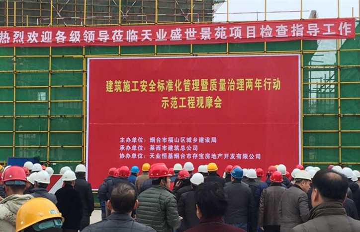 觀摩會上,煙臺市、區(qū)領(lǐng)導(dǎo)對天業(yè)盛世景苑工程的精品做法、施工現(xiàn)場管理、質(zhì)量管理、綠色施工給予了高度評價,特別對現(xiàn)場垃圾處理體系、模板支撐體系、樣板展示給予了充分肯定,并決定在福山區(qū)今后工程施工中推廣應(yīng)用。