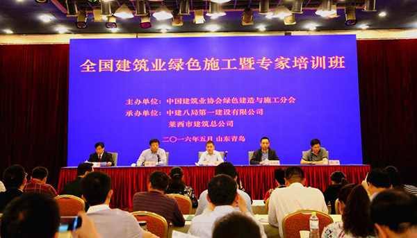 2016年5月11日,由中國建筑業(yè)協(xié)會(huì)綠色建造與施工分會(huì)主辦,我公司承辦的全國建筑業(yè)綠色施工暨專家培訓(xùn)班在青島海濱花園大酒店舉行。公司總裁趙成福同志應(yīng)邀出席了開班儀式。副總工李承霖同志介紹了我公司開展綠色施工的經(jīng)驗(yàn)。會(huì)后到我公司施工的青島大學(xué)附屬醫(yī)院東區(qū)綜合病房樓工程進(jìn)行了現(xiàn)場(chǎng)觀摩。