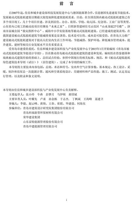 《青島市被動式低能耗建筑節(jié)能設(shè)計導則》扉頁