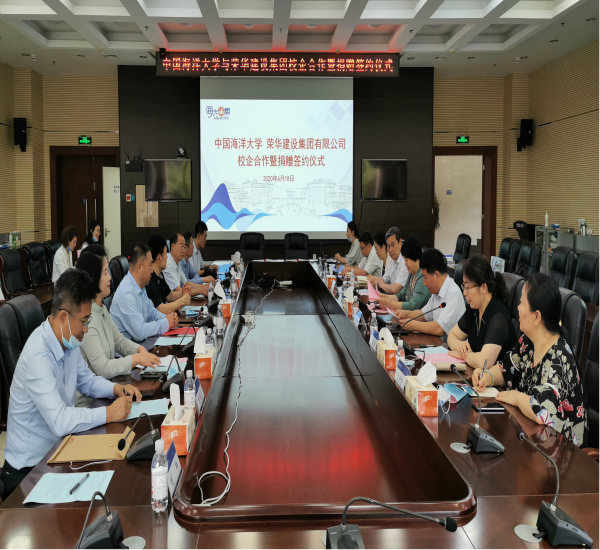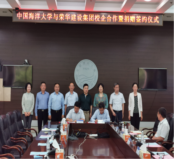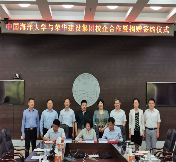 6月18日,中國(guó)海洋大學(xué)與榮華建設(shè)集團(tuán)校企合作暨榮華教育基金捐贈(zèng)簽約儀式在中國(guó)海洋大學(xué)圖書館第一會(huì)議室舉行。青島市慈善總會(huì)會(huì)長(zhǎng)王偉、非公經(jīng)濟(jì)分會(huì)會(huì)長(zhǎng)王吉春、專職副秘書長(zhǎng)趙軍、海大黨委常務(wù)副書記、校友會(huì)常務(wù)副會(huì)長(zhǎng)張靜,海大教育基金會(huì)理事長(zhǎng)王劍敏,榮華建設(shè)集團(tuán)董事長(zhǎng)孫涌、副總裁馬桂學(xué)、劉世海等出席儀式。