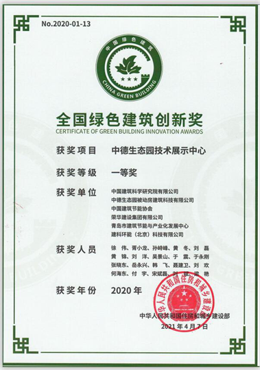 全國綠色建筑創(chuàng)新獎一等獎