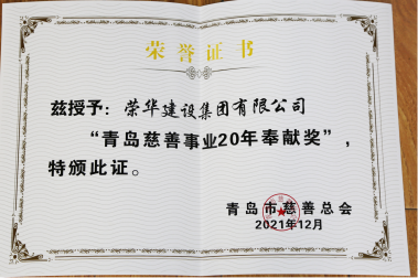 青島慈善事業(yè)20年奉獻(xiàn)獎(jiǎng)